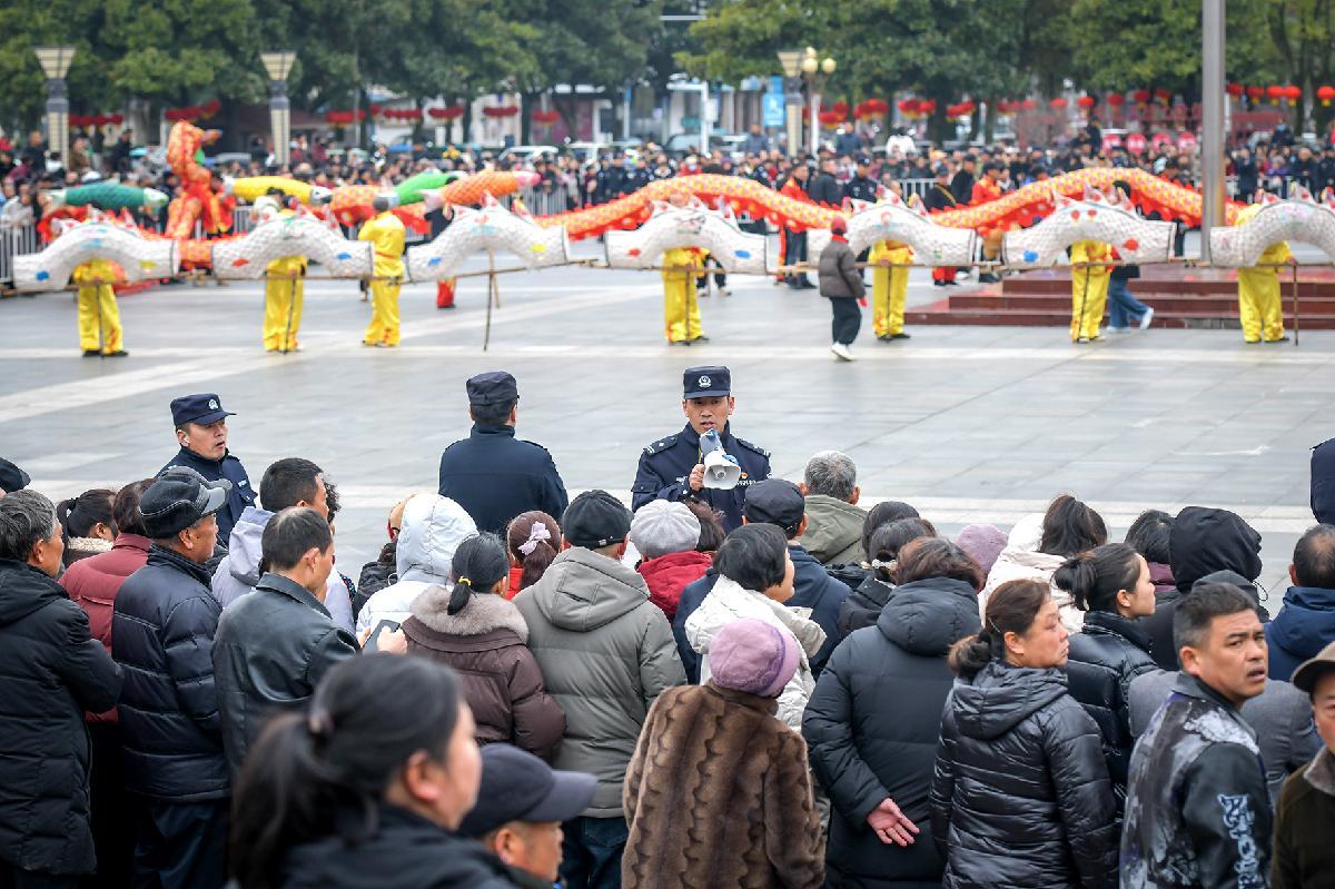 3月1日,四川省綿陽市公安局民警在元宵節(jié)活動現(xiàn)場定點值守,疏導人流、維護秩序。