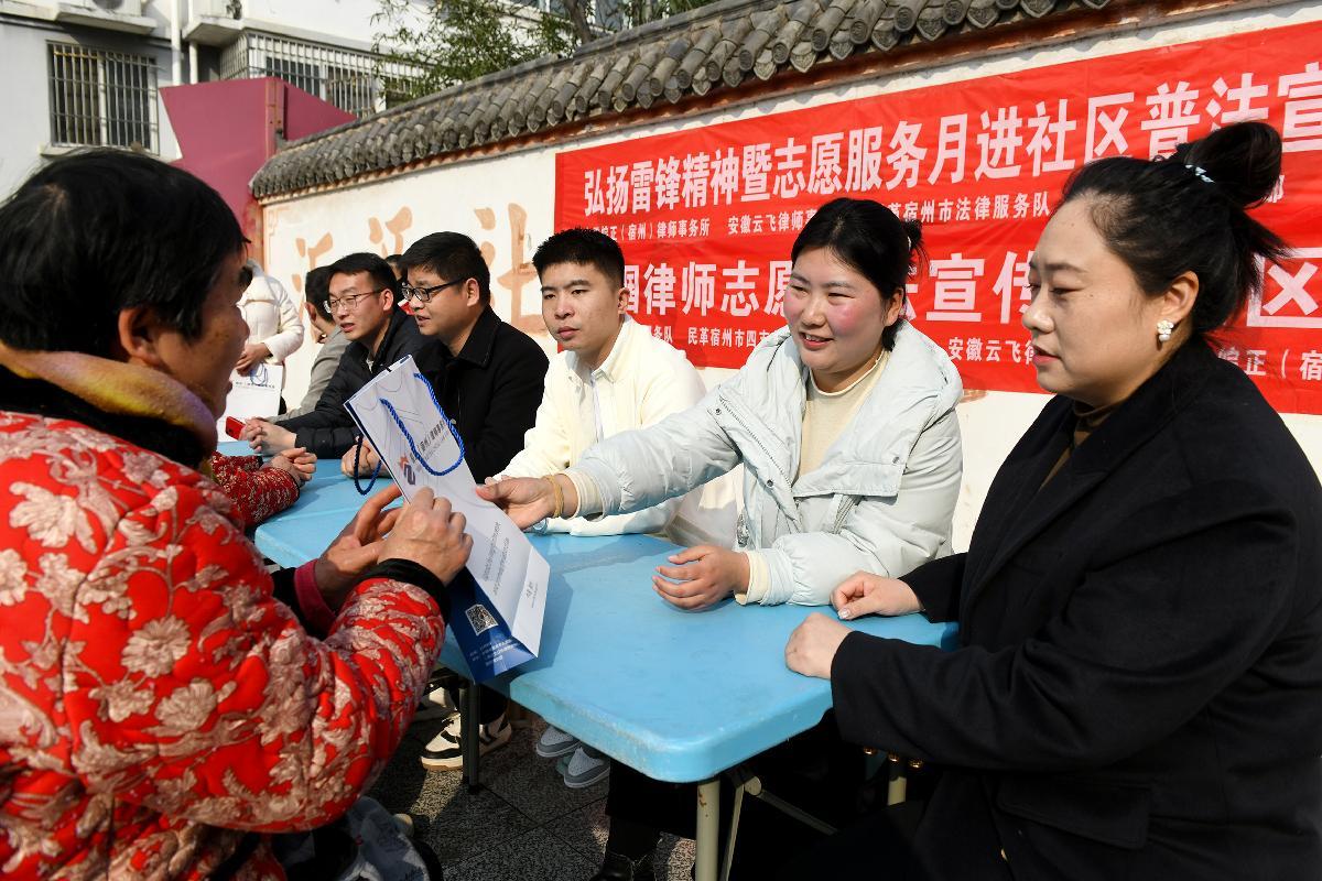 3月8日,安徽省宿州市司法局、埇橋區(qū)司法局精心組織一支由女律師為主的“弘揚(yáng)雷鋒精神 巾幗志愿服務(wù)”普法小分隊(duì),走進(jìn)社區(qū)開展志愿服務(wù)。