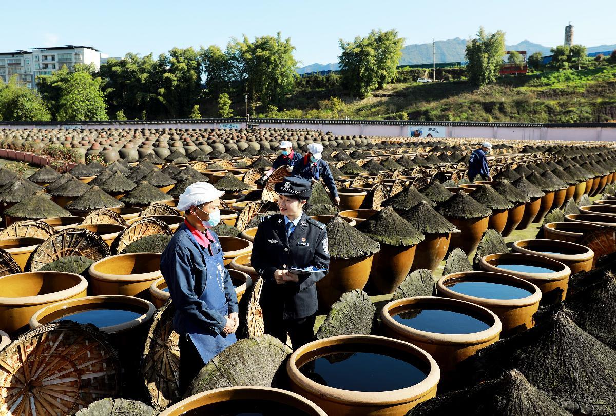 圖為3月10日,民警向一家曬醋企業(yè)工人了解生產(chǎn)經(jīng)營情況。