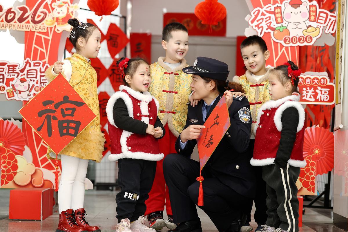 2月4日,山東省滕州市公安局民警走進(jìn)安居小學(xué)“春聯(lián)小屋”,與孩子們共同開展迎新春送?;顒?dòng)。