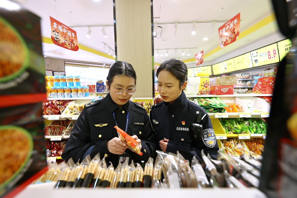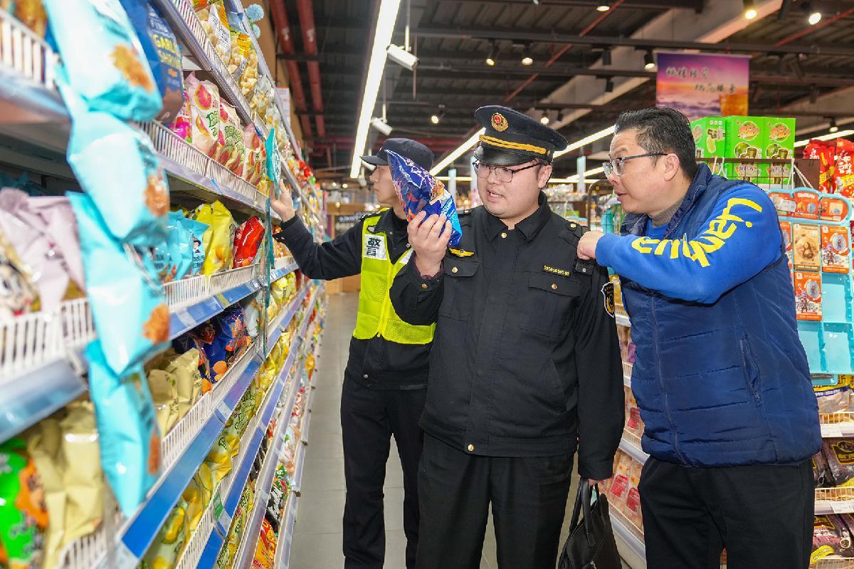3月13日,上海市公安局崇明分局城橋派出所民警聯(lián)合城橋鎮(zhèn)市場(chǎng)監(jiān)管所工作人員在轄區(qū)商超開展食品安全檢查。
