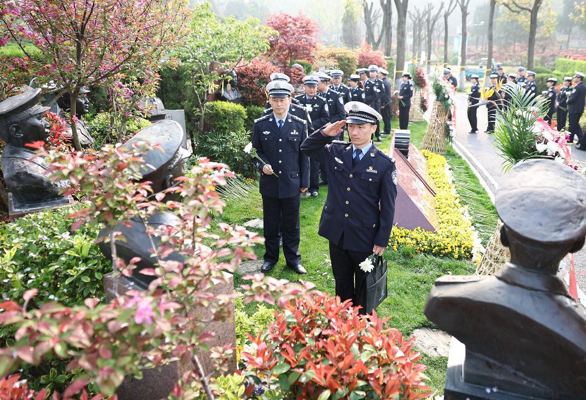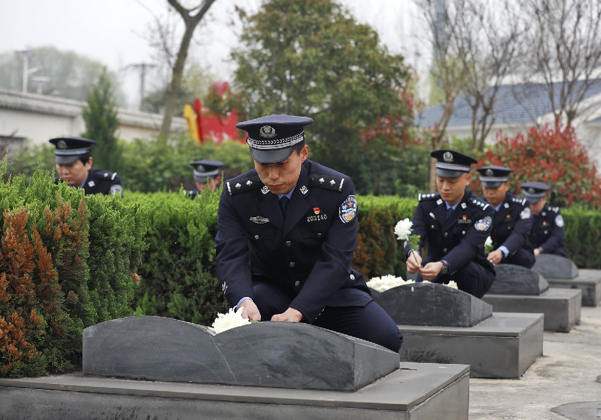 4月1日,安徽省合肥市公安局交管支隊組織民警輔警代表在大蜀山文化陵園開展清明祭掃活動。