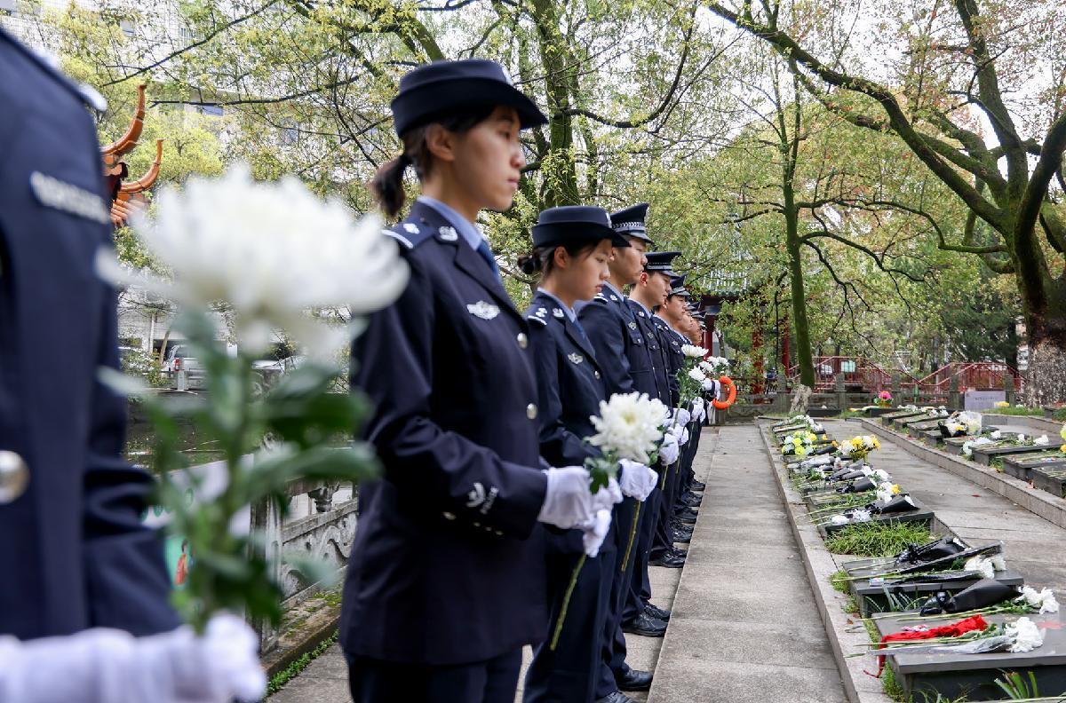 4月1日,浙江省湖州市長興縣公安局組織民警前往烈士陵園開展祭掃活動,緬懷先烈事跡,重溫入警誓詞,鑄牢忠誠警魂。