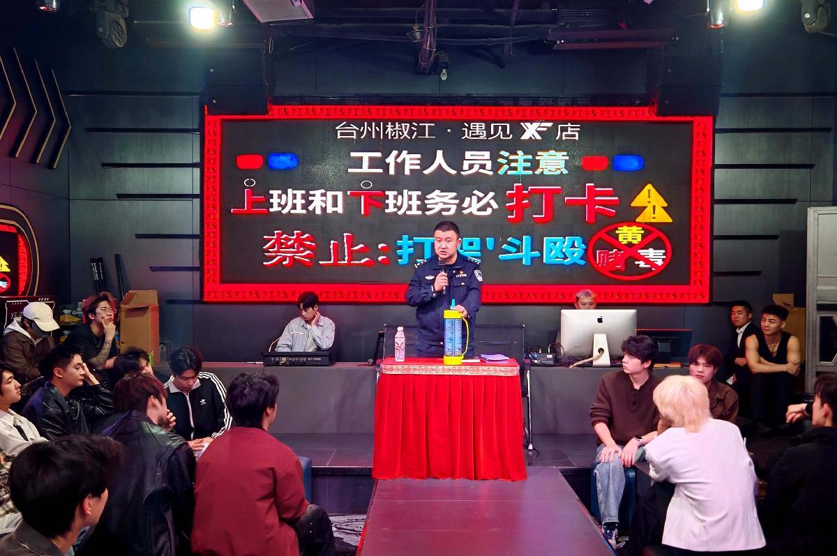4月2日,浙江省臺(tái)州市公安局椒江分局府前派出所民警走進(jìn)轄區(qū)娛樂(lè)場(chǎng)所,開(kāi)展安全防范宣傳。