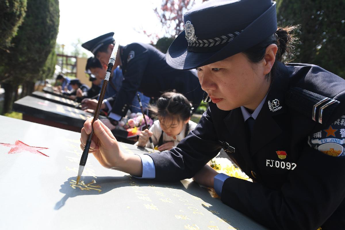 4月3日,貴州省銅仁市玉屏侗族自治縣公安局組織民警來到小鳳山烈士陵園開展祭奠活動。