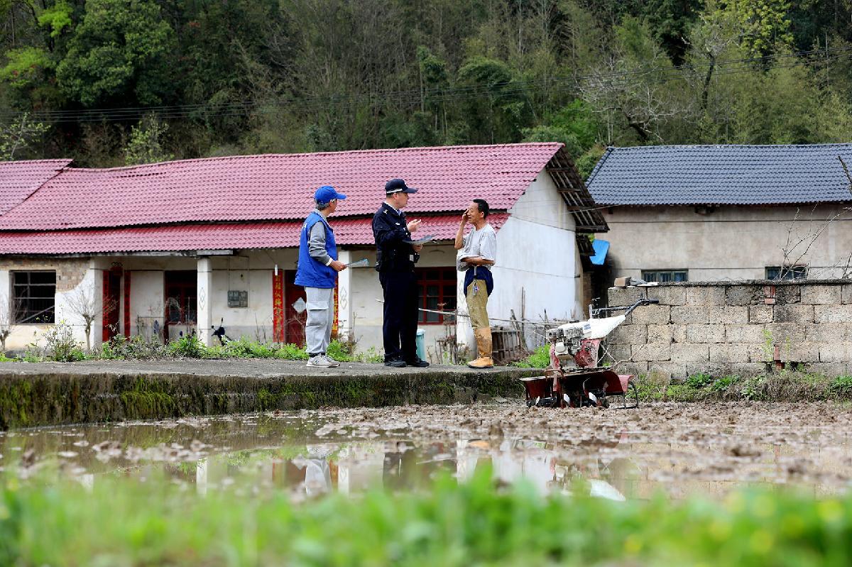 4月4日,安徽省寧國市公安局霞西派出所民輔警與義警深入田間地頭和景區(qū),向群眾開展反詐、禁毒及交通安全等知識宣傳。