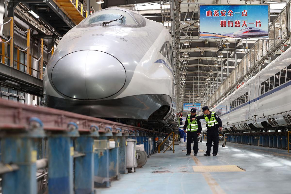 4月5日,石家莊鐵路公安處民警對石家莊動(dòng)車所場區(qū)進(jìn)行治安巡查。