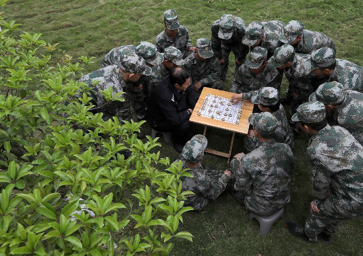朱前方和孩子們圍坐對弈。