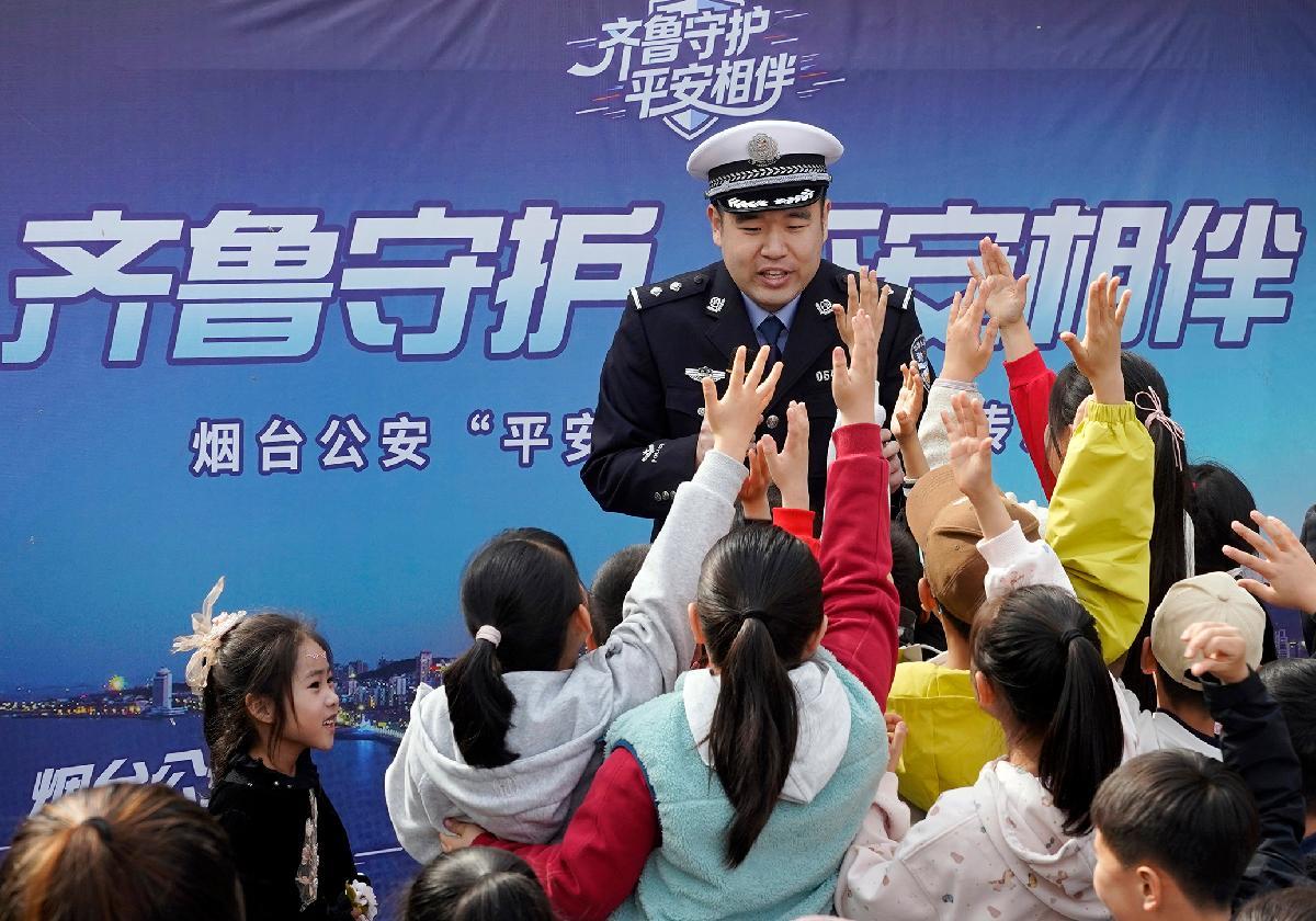 4月11日,山東省煙臺市公安局在牟平區(qū)龍湖櫻花大道舉辦“齊魯守護(hù)·平安相伴”春日游園會,現(xiàn)場小朋友積極參與交通安全游戲。