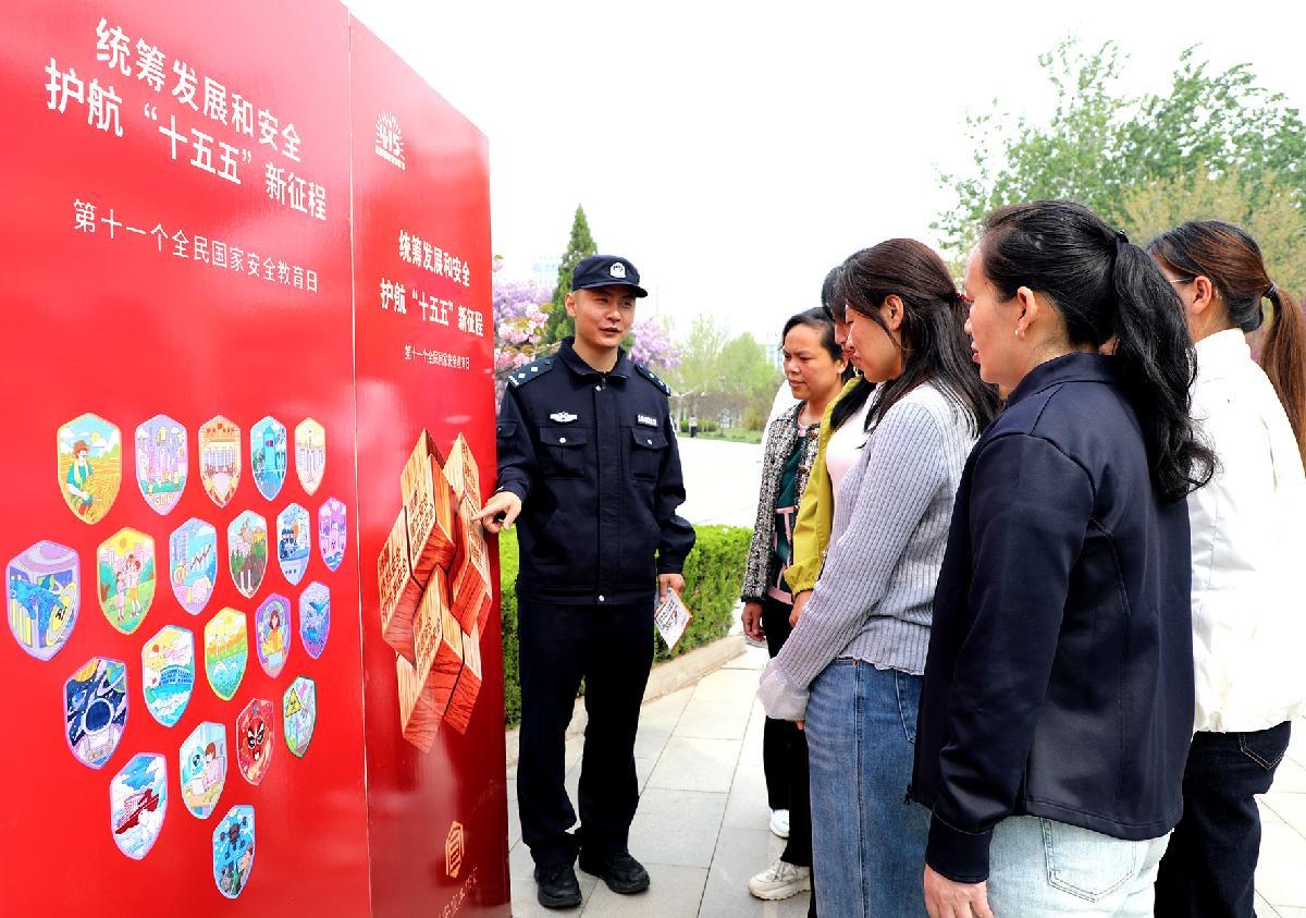 4月13日,山東省滕州市公安局民警在龍泉廣場向市民普及國家安全知識。
