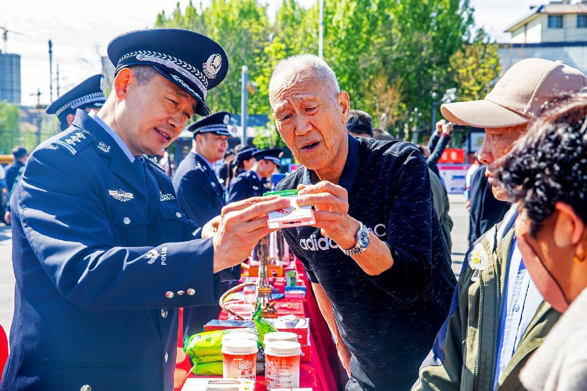 4月13日,山東省濱州市博興縣公安局博昌派出所民警為蒲姑社區(qū)居民普及國家安全相關(guān)法律法規(guī)知識。
