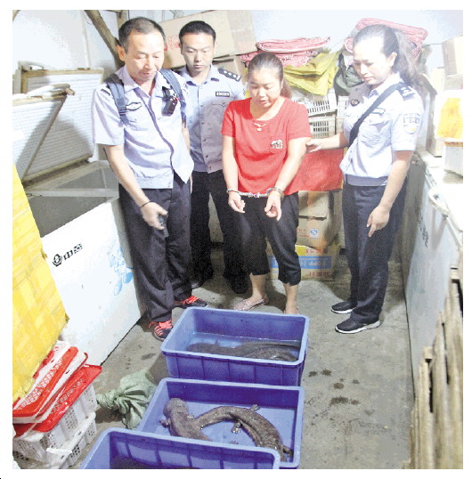 ▲ 犯罪嫌疑人正在向湖南省資興市森林公安民警指認(rèn)其無證銷售的野生娃娃魚。 本報記者 阮占江 本報通訊員 許志華 攝