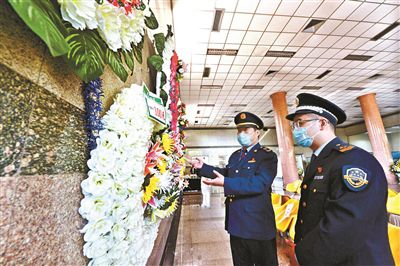 隨后,執(zhí)法人員又來(lái)到通州區(qū)殯儀館進(jìn)行檢查。進(jìn)入殯儀館的業(yè)務(wù)大廳,左側(cè)的墻上懸掛著大大小小的花圈,每一個(gè)花圈旁都附有一個(gè)醒目的商品價(jià)簽,價(jià)格從100元到300元不等,商品名稱(chēng)為“租花圈”。在正前方空地上擺放的鮮花花籃上,也都附有待租的名牌及價(jià)簽。