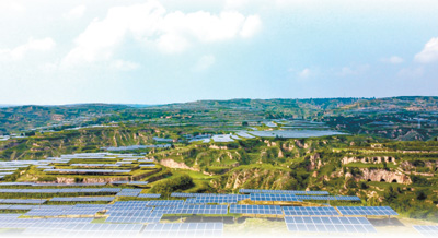 陜西省渭南市合陽(yáng)縣,塬上架起光伏板。