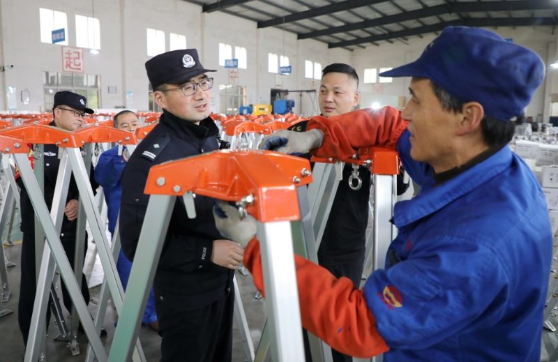 近日,江西省九江市公安局濂溪分局虞家河派出所民警輔警聯(lián)合市場監(jiān)管部門人員深入轄區(qū)企業(yè)進(jìn)行走訪和開展安全生產(chǎn)隱患排查,了解企業(yè)需求,并征求員工意見建議。圖為民警輔警和市場監(jiān)管部門人員走訪企業(yè)并開展安全生產(chǎn)隱患排查。 本報(bào)通訊員 游建棟 攝
