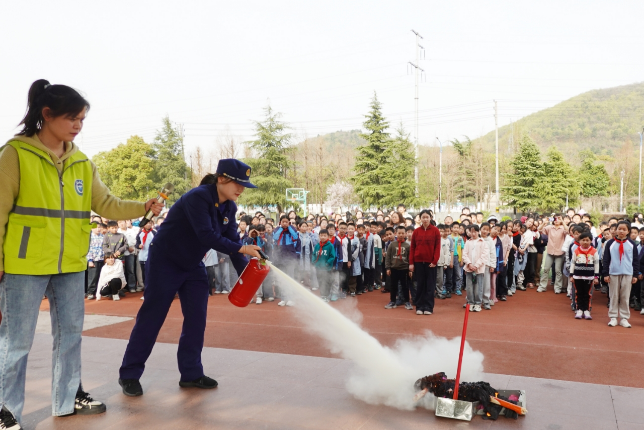 近日,安徽省馬鞍山市花山區(qū)江東街道金瑞社區(qū)聯(lián)合花山區(qū)消防救援局,在金瑞小學(xué)開展消防安全宣傳教育活動?;顒又?,隨著模擬火災(zāi)警報響起,全校師生迅速有序疏散至操場。消防人員現(xiàn)場指導(dǎo),詳細(xì)講解火災(zāi)逃生技巧及滅火器使用方法。圖為活動現(xiàn)場。 本報通訊員 胡智慧 攝