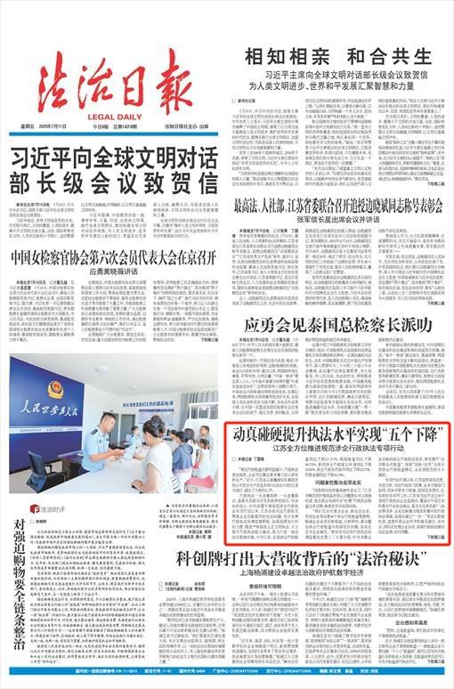 執(zhí)法為民,監(jiān)督為要。江蘇還部署推進(jìn)省市縣鄉(xiāng)四級全覆蓋行政執(zhí)法協(xié)調(diào)監(jiān)督體系建設(shè),省級、13個設(shè)區(qū)市地方政府全部啟用“行政執(zhí)法協(xié)調(diào)監(jiān)督局”印章,省市縣三級行政執(zhí)法部門設(shè)立法制機(jī)構(gòu)(執(zhí)法監(jiān)督機(jī)構(gòu))3020個,行政執(zhí)法監(jiān)督隊伍發(fā)展壯大到9073人。創(chuàng)新出臺《行政執(zhí)法協(xié)調(diào)監(jiān)督職責(zé)指導(dǎo)清單(1.0版)》,細(xì)化明確12項協(xié)調(diào)監(jiān)督事項31項具體職責(zé),并以此為基礎(chǔ)出臺《行政執(zhí)法監(jiān)督文書示范文本(試行)》,編制18種文書樣式,從實體和程序兩方面實現(xiàn)對行政執(zhí)法工作的全方位、全流程、常態(tài)化、長效化監(jiān)督,讓監(jiān)督的“牙齒”真正“咬合”。