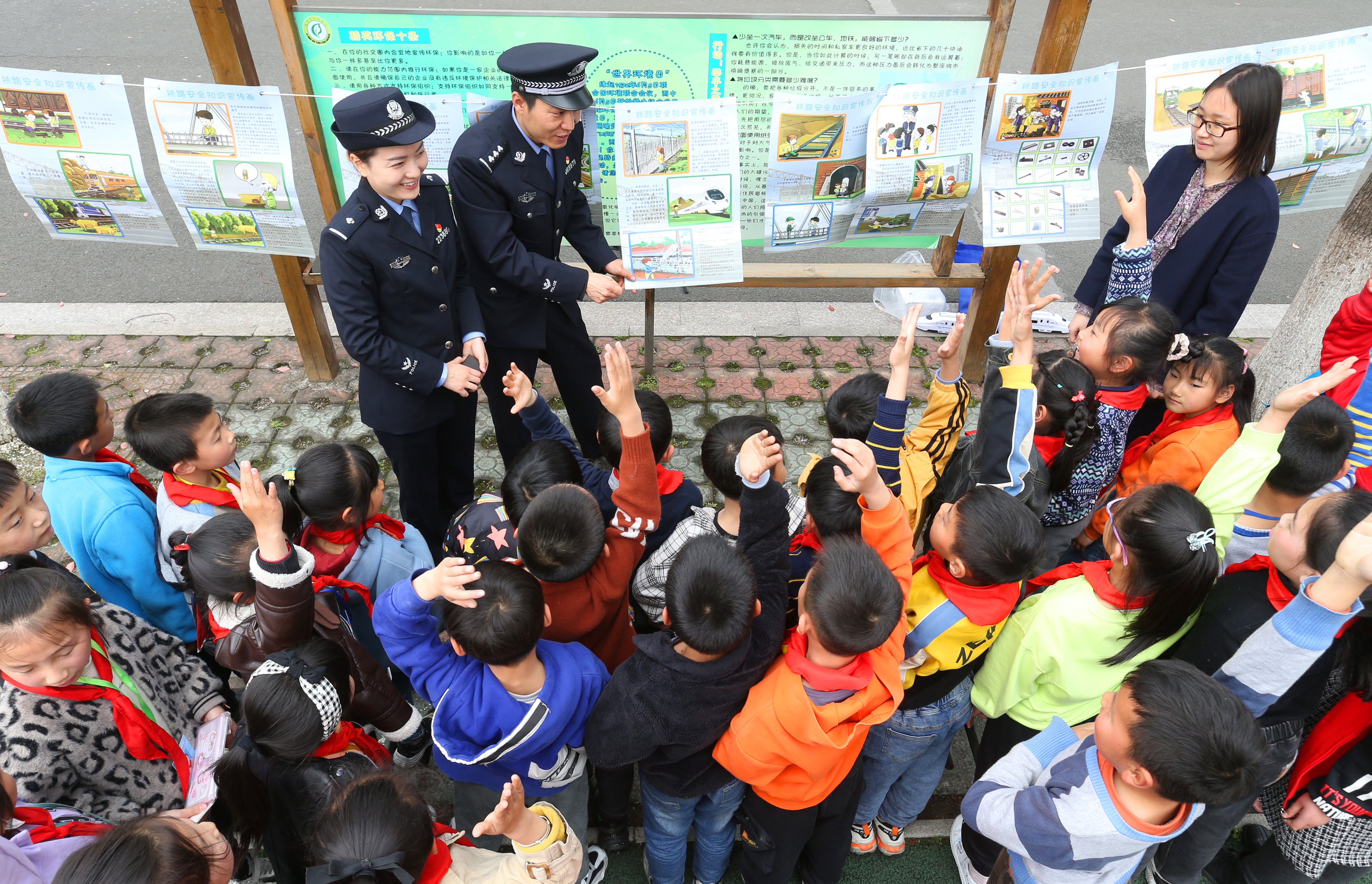 4月13日,江蘇省宜興市公安局環(huán)科園派出所聯(lián)合南京鐵路公安處宜興站派出所民警,來到鐵路沿線環(huán)科園實驗小學,開展“讓風箏遠離高鐵線”主題宣傳活動,用事實案例教育孩子們莫讓小小風箏成為安全隱患,為他們普及鐵路安全知識,提高自我防護意識。圖為民警為學生講解鐵路安全知識。