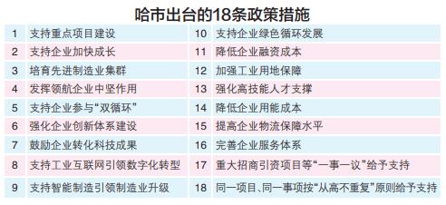 為有效推動(dòng)制造業(yè)質(zhì)量變革、效率變革、動(dòng)力變革,哈爾濱市日前出臺《關(guān)于加快推動(dòng)哈爾濱制造業(yè)高質(zhì)量發(fā)展實(shí)現(xiàn)工業(yè)強(qiáng)市的若干政策措施》,通過支持重點(diǎn)項(xiàng)目建設(shè)、培育先進(jìn)制造業(yè)集群、降低企業(yè)融資成本等18條具體措施,重點(diǎn)支持哈爾濱制造產(chǎn)業(yè)發(fā)展,助推工業(yè)強(qiáng)市。