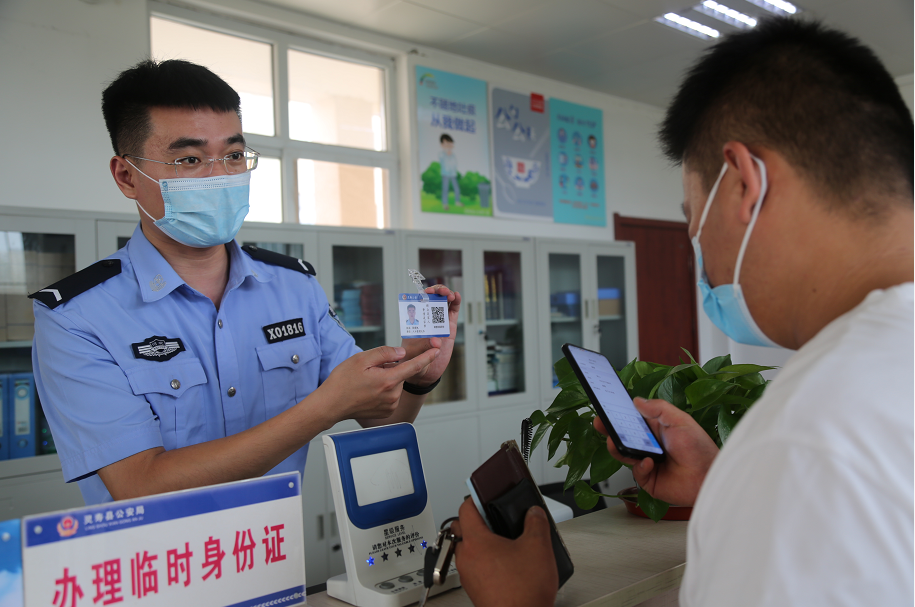 近日,河北省靈壽縣公安局舉行“群眾是家人、警情是家事”掃碼評警啟動儀式,推行“二維碼評警”智能警務(wù)評議系統(tǒng)。今后,靈壽公安窗口服務(wù)人員、出警民警將佩戴二維碼上崗、辦案,當事群眾可以通過掃碼對公安工作進行評價?!皰叽a評警”既能快速回應(yīng)群眾合理訴求,又能為窗口服務(wù)和公安隊伍建設(shè)提供有效監(jiān)督和數(shù)據(jù)保障。圖為靈壽公安窗口服務(wù)人員向辦事群眾展示二維碼并接受評價。