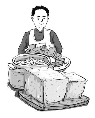 父親不僅豆腐做得好、賣得好,更喜食豆腐。經(jīng)父親煎、炒、炸、煨、燉、拌的豆腐,貼心貼胃,鮮活成味蕾上的記憶。父親說(shuō):人間至味是豆腐。受父親影響,我也喜食豆腐,對(duì)有關(guān)描寫豆腐的典故、文章更是百讀不厭。