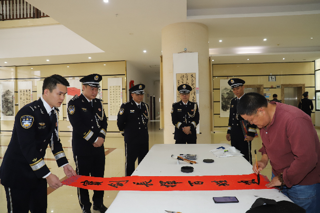 1月10日是我國第二個(gè)人民警察節(jié)。當(dāng)天,海南省昌江黎族自治縣公安局舉行“升國旗、迎警旗”宣誓儀式,并展示詩聯(lián)、書法、美術(shù)、攝影等作品,激勵(lì)廣大民輔警以更加強(qiáng)烈的政治擔(dān)當(dāng)忠實(shí)履行新時(shí)代公安使命任務(wù)。圖為書法活動(dòng)現(xiàn)場(chǎng)。
