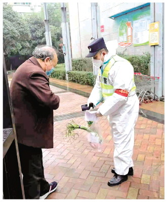 勞動二社區(qū)是大型國有企業(yè)西電公司的老家屬院,沒有電梯,老年人、殘疾人比較多,上下樓不方便。社區(qū)和物業(yè)防護器材都很缺乏,民警劉華侃利用防護裝備齊全的優(yōu)勢,擔任了義務(wù)送菜員,給下樓不方便的老人義務(wù)送菜。