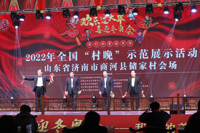 1月23日,是農(nóng)歷的臘月二十一,一場(chǎng)以“喜迎冬奧會(huì) 歡樂過大年”為主題的“村晚”在山省濟(jì)南市商河縣儲(chǔ)家村“舉辦”,這是2022年全國“村晚”示范展示點(diǎn)錄制現(xiàn)場(chǎng)之一。