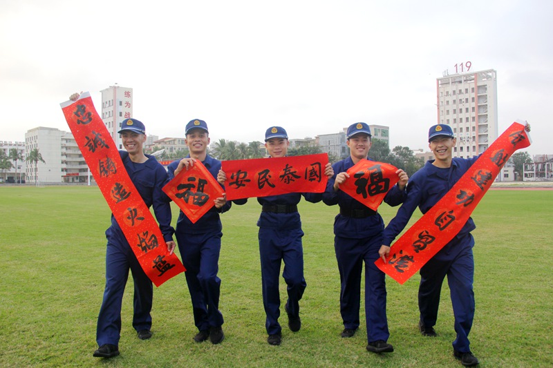千門(mén)萬(wàn)戶(hù)曈曈日,總把新桃換舊符。1月26日下午,新春佳節(jié)將至,海南省書(shū)法協(xié)會(huì)書(shū)法家走進(jìn)海南省消防救援總隊(duì)為消防救援人員寫(xiě)春聯(lián)、教書(shū)法、送祝福。(符武平)