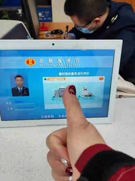 “大家都要向鵬宇學習,辦理業(yè)務(wù)時要充滿耐心、細心,為每一位前來辦事的人員提供優(yōu)質(zhì)服務(wù)?!鄙衔?0:30,辦稅服務(wù)廳副主任周霞在微信工作群里發(fā)了一張來自繳費人拍的照片--一個大拇指與程鵬宇評價窗口的合照。
