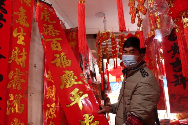 “今年是虎年,我特意來買一副含虎字的對聯(lián),希望帶來好運,虎年家人平平安安。”市民吳茂德說。