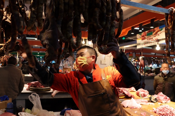 走進該縣各個農(nóng)貿(mào)市場,魚丸、肉丸和香腸的味道撲鼻而來,攤位前站滿了采購年貨的市民。多位商販告訴筆者,進入臘月后,顧客明顯增多,幾乎每天從早上五六點忙到晚上七八點。
