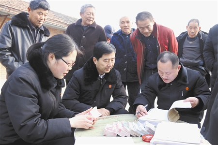 為方便農(nóng)戶,在路某如期將欠款交至法庭后,法官又來(lái)到村里,仔細(xì)核對(duì)身份,將土地租賃費(fèi)發(fā)到農(nóng)戶手中。隨后,還向村民們發(fā)放了土地流轉(zhuǎn)方面的普法宣傳資料。(周瑞平 陳棟梁 趙麗梅)