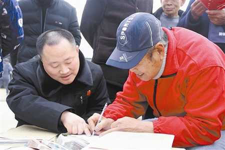 圖②:農(nóng)戶在簽字領(lǐng)款。