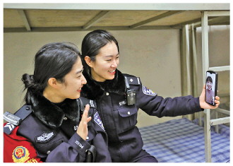 3名女民警相視會心一笑,默契地完成了值班交接,她們是石家莊鐵路公安處石家莊站派出所的三代“警花”師徒——張姿、王蕾、王莉。