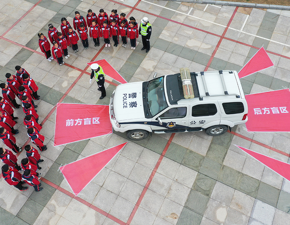 2月17日,浙江省舟山市岱山縣公安局交警大隊民警走進岱山縣實驗學校開展“安全第一課 一起向未來”交通安全教育進校園活動。民警向?qū)W生講解交通標志、車輛盲區(qū)等知識,并進行交通標志知識互動競答,增強學生們的交通安全意識。