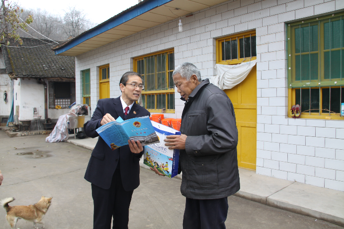 圖為富縣人民檢察院副檢察長(zhǎng)趙忠韜入戶宣傳法律知識(shí)。