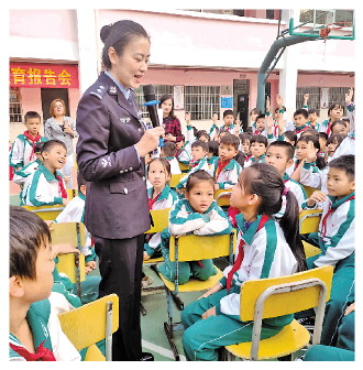 圖為李陽進(jìn)校園進(jìn)行安全宣傳。