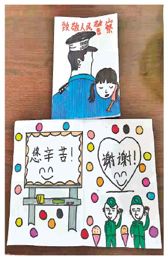 “致敬人民警察!”“您辛苦了,謝謝!”每次來到中小學(xué)校講課,李陽都會收到一張張賀卡、明信片,上面寫滿了學(xué)生的心聲,或者畫著孩子們心中的警察形象。