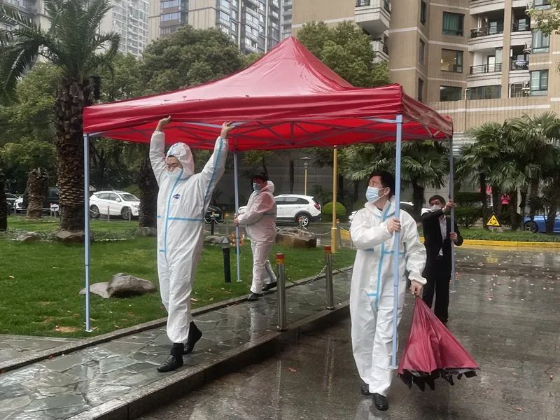 “許多外籍住戶對(duì)我們的工作評(píng)價(jià)非常高,因?yàn)樗麄儚臎](méi)見(jiàn)過(guò)這樣一支有力的隊(duì)伍。”毛巳春表示,從凌晨接到核酸篩查的任務(wù),短短的幾個(gè)小時(shí),從無(wú)到有,居委與物業(yè)就完成了臨時(shí)的檢驗(yàn)棚的搭建,一米線設(shè)置、桌椅板凳、引導(dǎo)標(biāo)志、動(dòng)線安排……一支志愿者隊(duì)伍也誕生了。