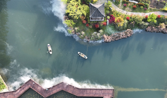 3月29日,湖州市德清縣洛舍鎮(zhèn)東衡村廟前兜河道水清景美,河道保潔員正在日常保潔。2022年來,該鎮(zhèn)深入實(shí)施立體式“水下森林”生態(tài)修復(fù)工程,自然景觀優(yōu)美怡人。(謝尚國)