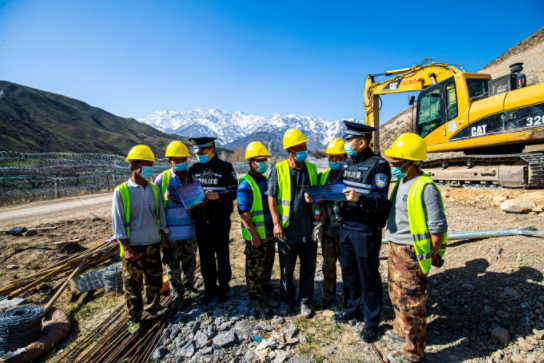 隨著天氣逐漸轉(zhuǎn)暖,在邊境地區(qū)務(wù)工、放牧的流動(dòng)人員日漸增多。近日,新疆出入境邊防檢查總站伊犁邊境管理支隊(duì)紅卡子邊境派出所采取發(fā)放傳單和現(xiàn)場宣講相結(jié)合的方式,開展邊境法律法規(guī)宣傳活動(dòng)。圖為民警向邊境務(wù)工人員宣傳邊防法規(guī)政策,增強(qiáng)群眾邊境安全意識(shí)。