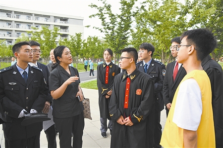 隨著“審判長”敲響法槌,以未成年被告人習(xí)某航故意傷害案為藍(lán)本的模擬法庭宣布開庭。庭審中,“書記員”宣布法庭紀(jì)律,“公訴人”宣讀起訴書,“被告人”答辯,法庭調(diào)查、法庭辯論、法庭教育及當(dāng)庭“宣判”等程序有序進(jìn)行。