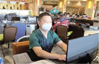 圖為何宗暉在隔離點做信息統(tǒng)計等工作。