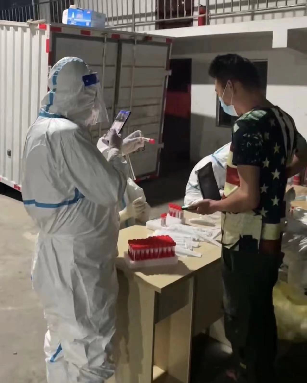 到達目的地后,我們有組織地迅速與社區(qū)對接,了解情況、熟悉工作流程、掌握相關政策。在完成一系列的準備工作后,我正式踏上了防疫戰(zhàn)場。一邊拿著大喇叭維護各個樓的核酸排隊秩序,一邊幫助成百上千人查看健康碼,輔助醫(yī)護人員開展核酸檢測……盡管我一個人的力量稍顯微弱,但仍然努力地在每一個有需求的地方貢獻自己的力量。