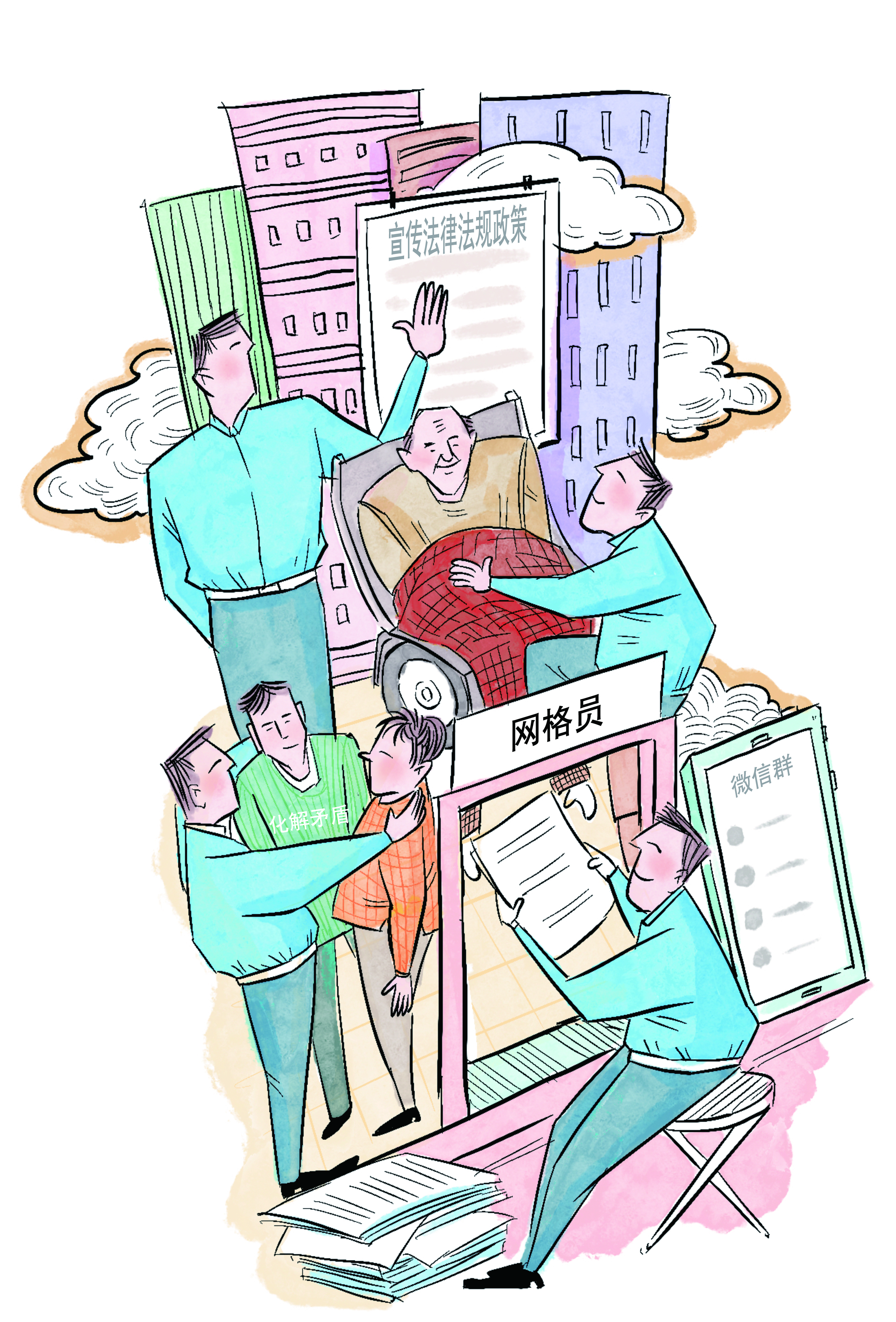 《辦法》明確網(wǎng)格長(zhǎng)履行轄區(qū)內(nèi)網(wǎng)格員日常管理職責(zé),指導(dǎo)幫助網(wǎng)格員協(xié)調(diào)解決工作中遇到的困難和問(wèn)題。網(wǎng)格員則主要發(fā)揮宣傳員、信息員、協(xié)管員、矛調(diào)員、服務(wù)員的作用,但不替代有關(guān)行政部門承擔(dān)監(jiān)督管理責(zé)任。網(wǎng)格輔助員在力所能及的范圍內(nèi)配合開展網(wǎng)格相關(guān)工作,與網(wǎng)格長(zhǎng)、網(wǎng)格員等組成團(tuán)隊(duì),開展組團(tuán)式服務(wù)。