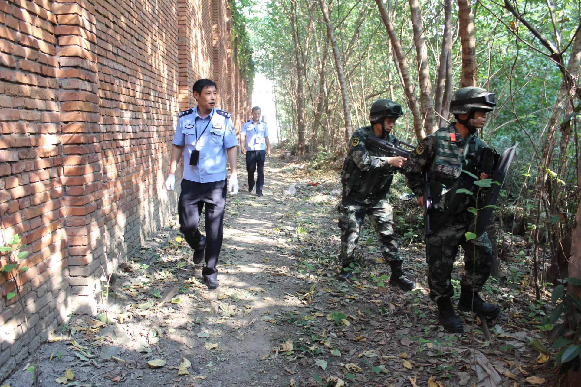圖為董志勇(左一)與武警聯(lián)合開(kāi)展看守所安全隱患排查。