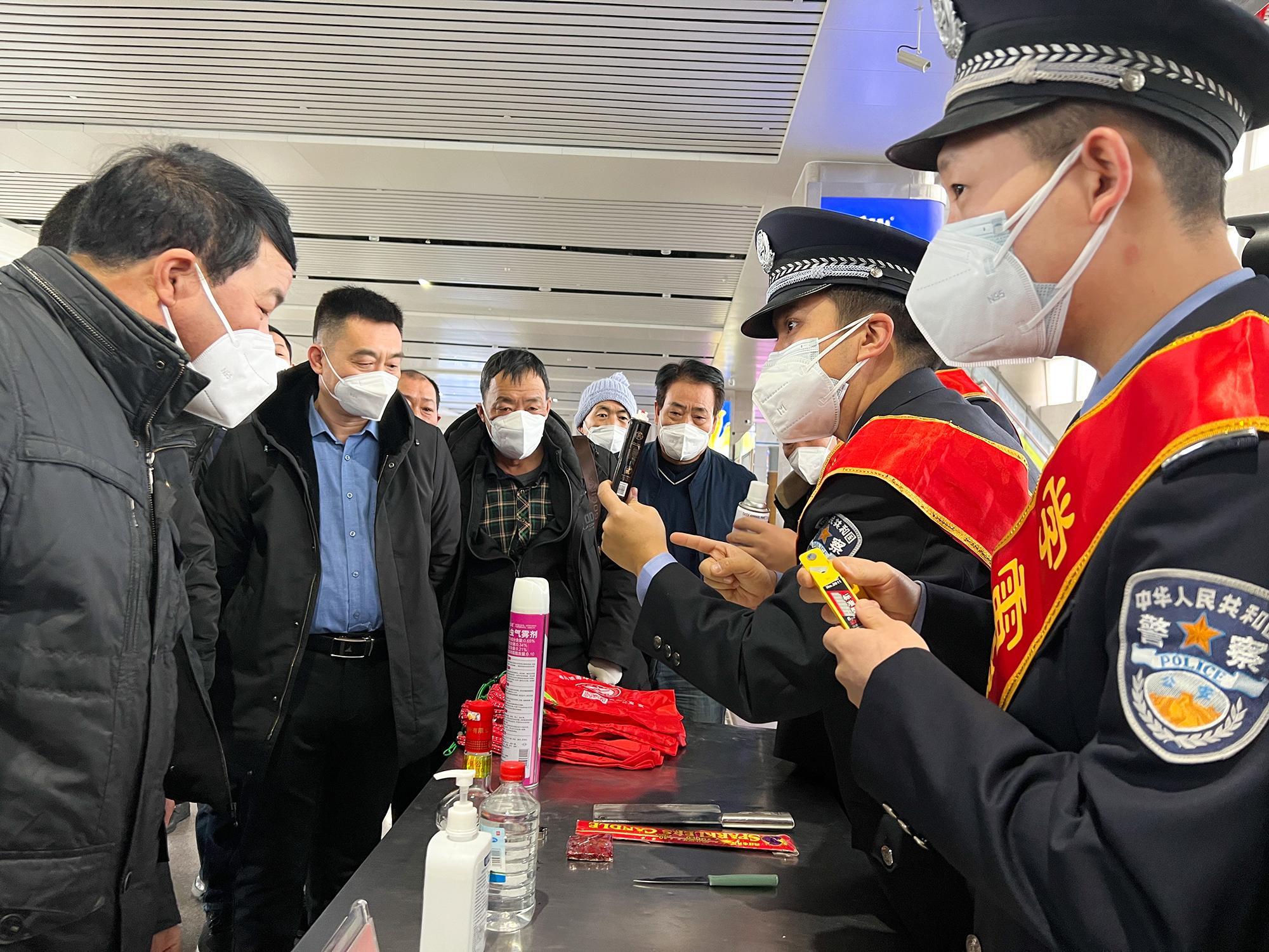 近日,烏魯木齊鐵路公安局奎屯公安處組織各站派出所開展青年志愿者活動(dòng),民警深入候車廳、售票室、車廂內(nèi),通過發(fā)放宣傳資料、實(shí)物展示講解等方式,宣講鐵路安全知識(shí)、“防電詐”安全常識(shí)等,提升旅客群眾安全防范意識(shí),營(yíng)造安全、有序、溫馨的春運(yùn)乘車環(huán)境,展示良好鐵警形象。圖為克拉瑪依站派出所民警向候車旅客講解禁止攜帶的危險(xiǎn)物品種類。