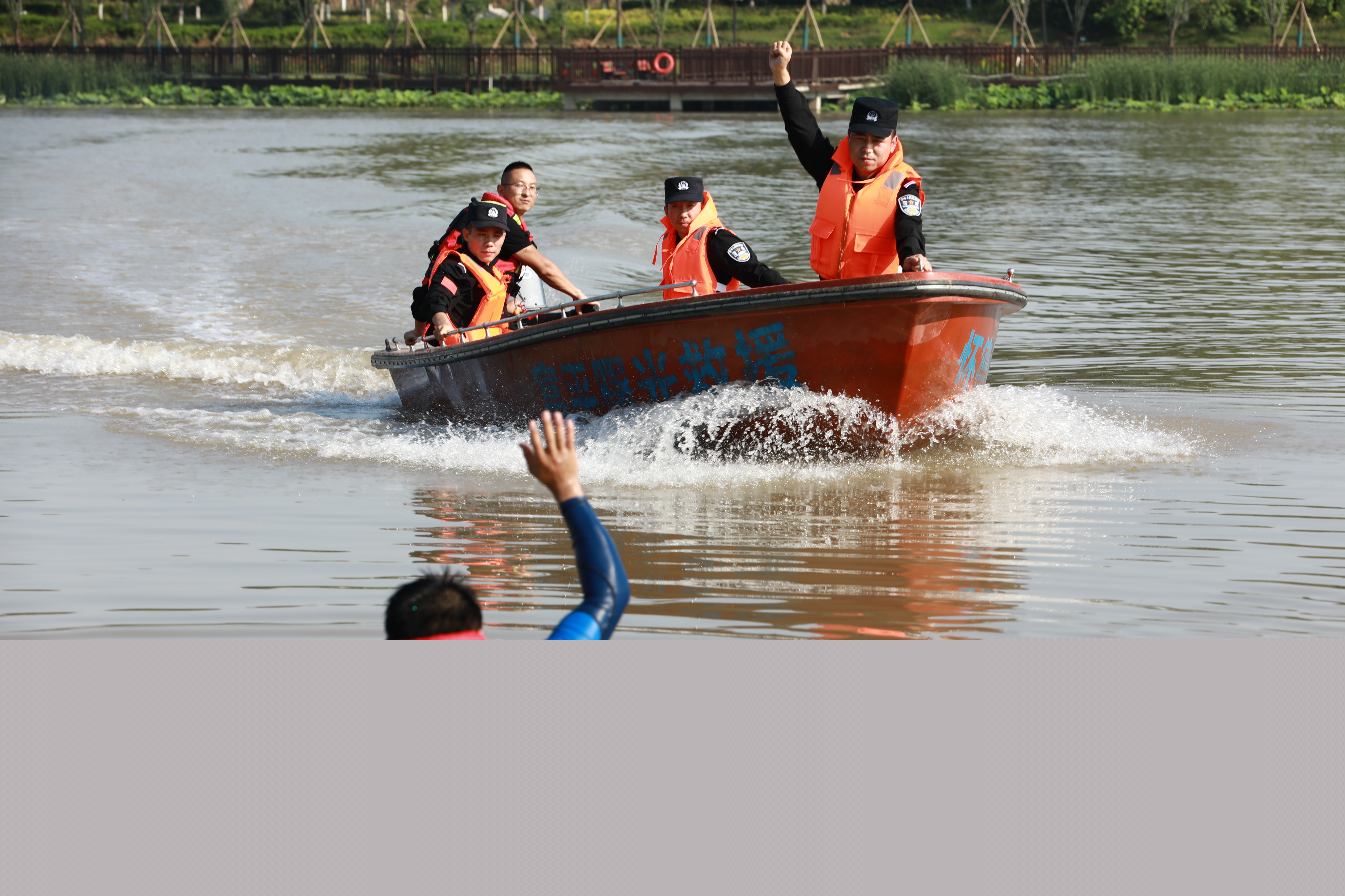 近日,陜西省富平縣公安局巡特警大隊聯(lián)合縣應急管理局救援人員在石川河開展水上救援演練,重點圍繞水上徒手營救、無人機投送救生圈、沖鋒舟操控、現(xiàn)場急救等科目進行演練,切實提升巡特警隊員應急救援能力。圖為巡特警隊員和救援人員正在演練營救落水人員。 通訊員 劉蒼鋒 攝
