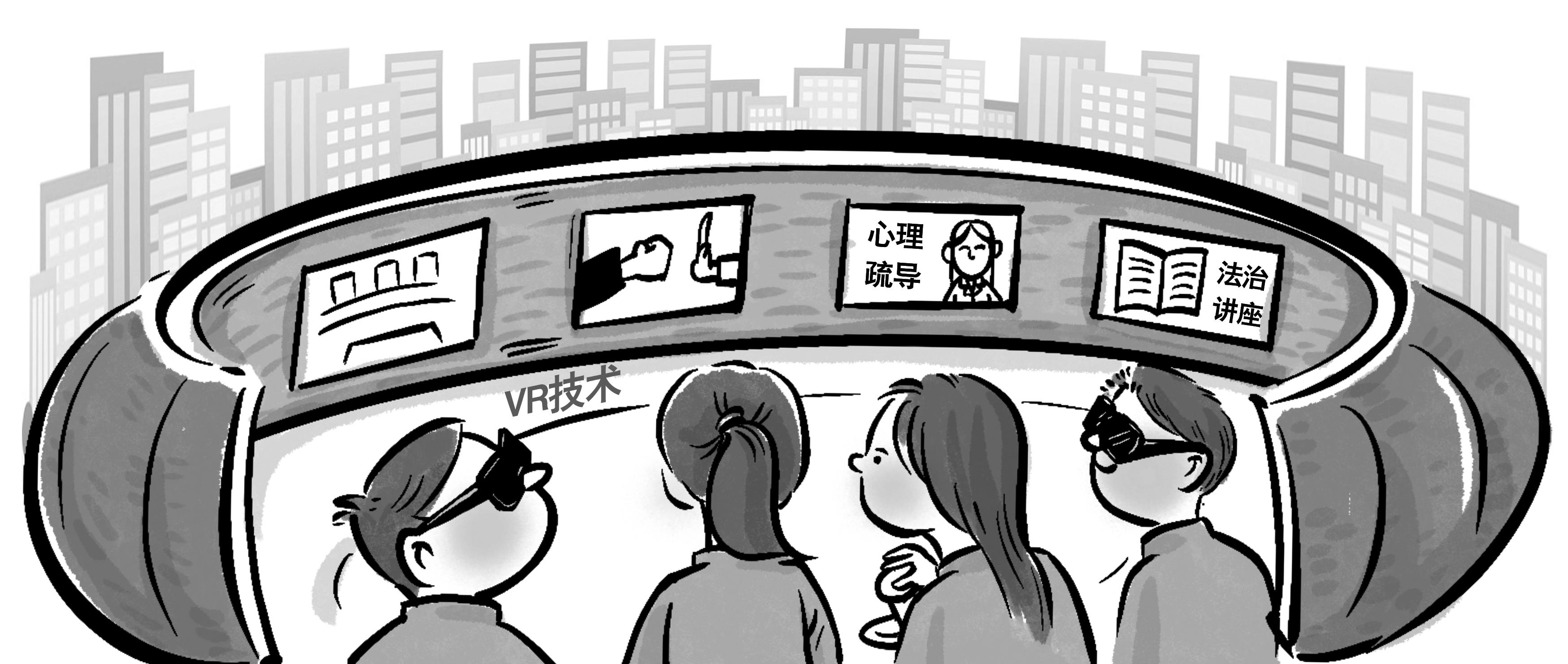 《法治日報》記者看到,《VR防校園欺凌》借助VR頭盔、手柄等配件,對校園暴力情景劇的發(fā)展路徑進行可視化選擇,讓青少年深度體驗面對校園暴力時不同選擇帶來的后果。而在“小桔燈”青少年法治教育基地走廊,以漫畫形式講述青少年違法犯罪的原因、不良行為容易引起違法犯罪、未成年人刑事責(zé)任和民事責(zé)任年齡等法律知識,讓青少年學(xué)習(xí)了解相關(guān)法律知識。在心理咨詢室,設(shè)有心理測試自助管理系統(tǒng)以及沙盤游戲,青少年可以在心理咨詢師的指導(dǎo)下開展心理測評,解決在學(xué)習(xí)和生活中遇到的心理困擾和問題。社區(qū)矯正觀護中心則主要以樹立積極陽光的心態(tài)為主題,讓青少年在感受法律威嚴的同時,積極開展矯治教育,讓問題青少年順利回歸社會。